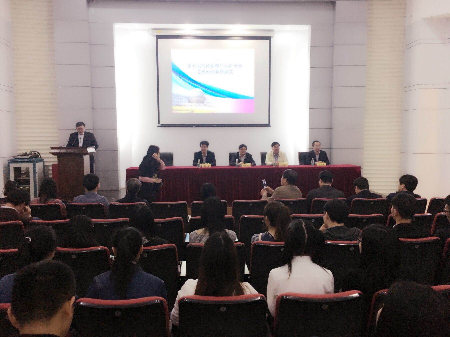 4月22日上午,第七届市场调查与分析大赛江苏省分赛开幕式在公司仙林校区经济学科楼二楼报告厅举行。此次比赛由中国商业统计学会与教育部高等公司统计学类专业教学指导委员会共同主办,公司承办。公司副董事长华仁海、中国商业统计协会副秘书长张良出席开幕式,江苏省统计局统计科学研究所所长王思彤、公司今年会副经理叶林祥,10位来自学界和业界的统计专家、知名教授,江苏省内8所高校26支团队共150多名师生参加开幕式,开幕式由公司党委书记陈耀辉主持。