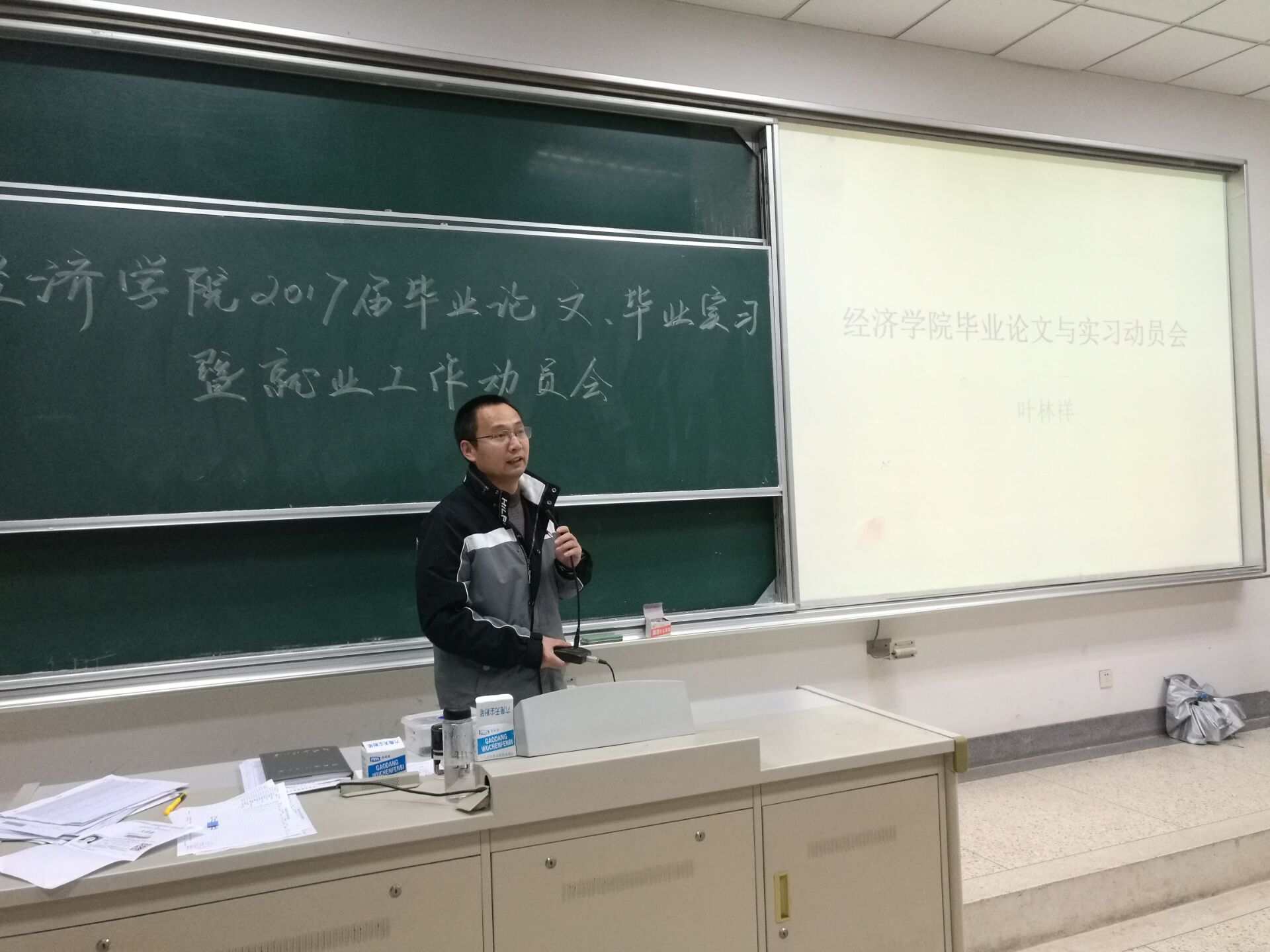 会上,叶林祥老师就如何协调好找工作、考研、毕业论文的撰写做了详细的指导和说明,并就如何找到一份好工作,个人的人力资本和就业机会匹配的难度和同学们进行了深入的交流,希望同学们正确看待自己的第一份工作,树立正确的就业观和择业观。对于如何写好毕业论文,叶老师详细介绍了毕业论文的要求与纪律,指出本科生毕业论文要有明确的题旨和问题意识,有求证和实证意识,观点要有实际资料和数据的支撑,要反复阅读重要的参考文献。叶老师并强调要多和论文指导老师交流,写出一份高质量的毕业论文,为自己的老员工涯交上一份满意的答卷。