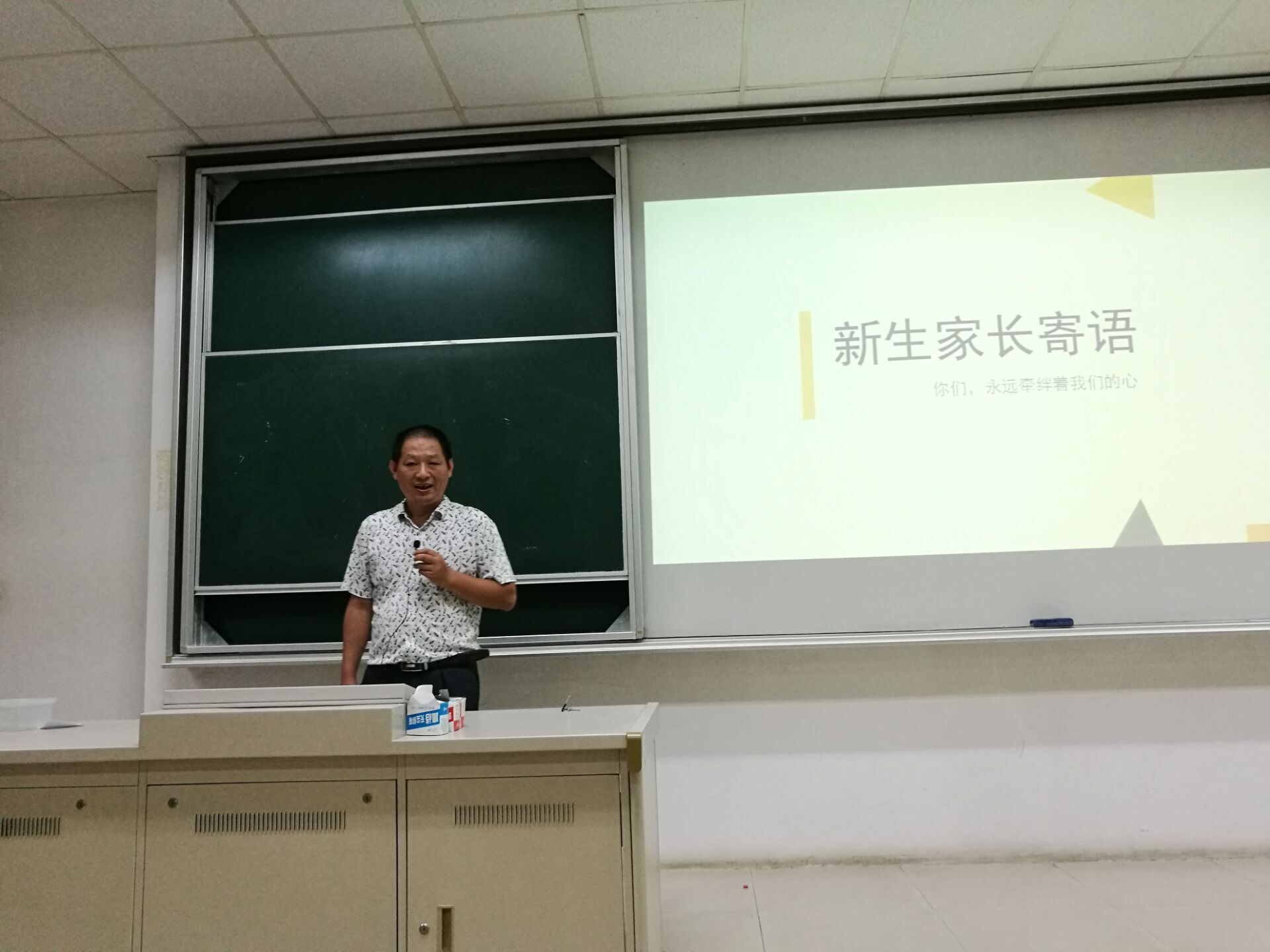 随后,新生家长代表上台发言。他为孩子能够来到南财而感到开心,为看到美丽的校园、整洁的宿舍、强大的团队队伍而感到放心,为看到尽心尽力、周到细致的志愿者们而感到暖心。他还代表新生家长们对同学们提出期望和建议,希望他们学习不松懈,尽快适应老员工活与学习,同学之间友好相处,并祝福南财蒸蒸日上,再创辉煌。