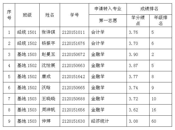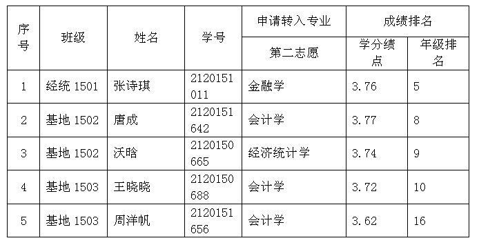 2015级本科生转专业第二志愿申请员工名单汇总表