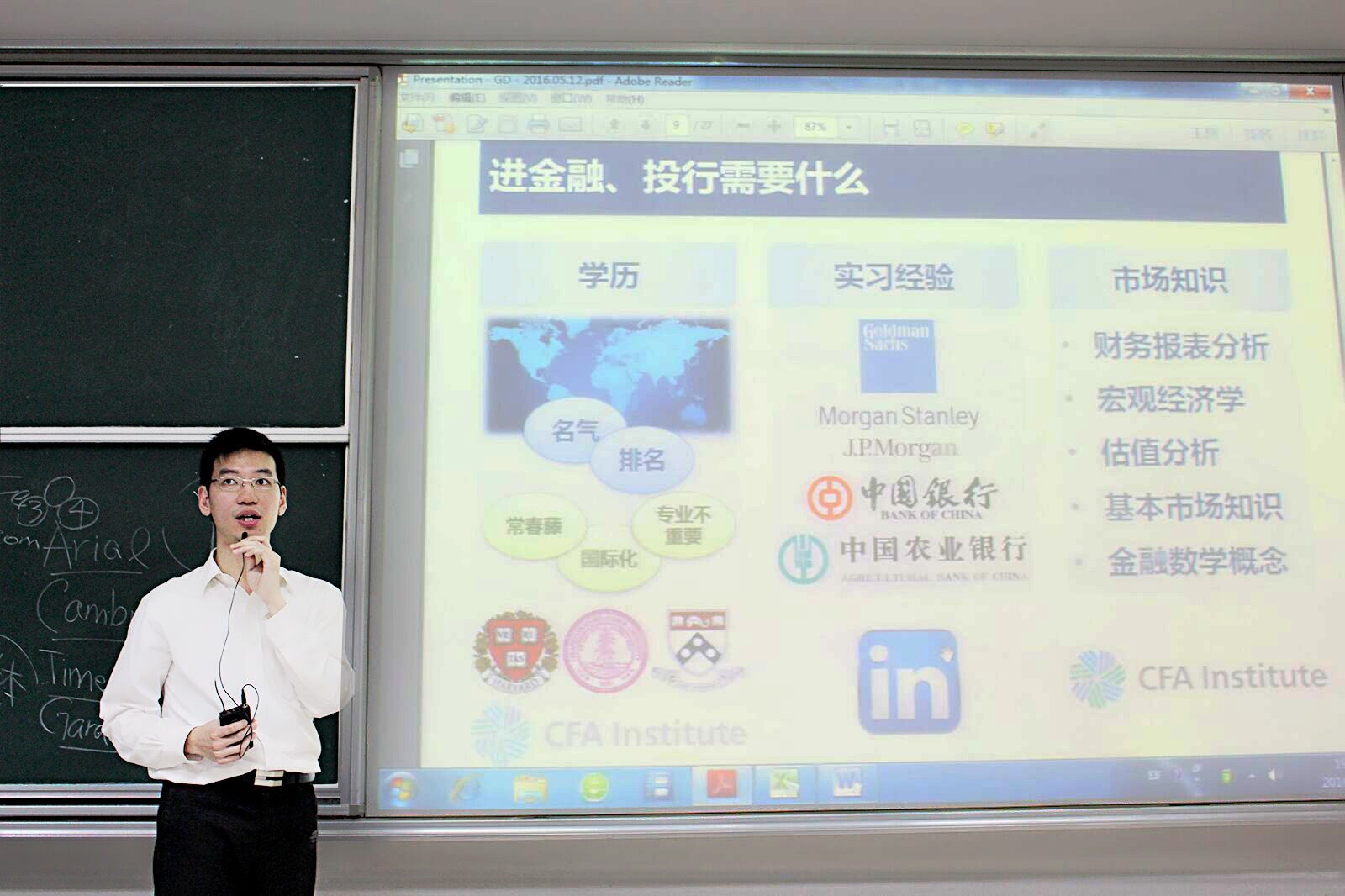 5月18日晚,公司于管理学科楼103室举办了“不一样的经历,不一样的财经人生”为主题的财经工作经历分享会。此次分享会邀请了在投行工作的财务经理胡乔先生公司部分师生参加了此次分享会。
