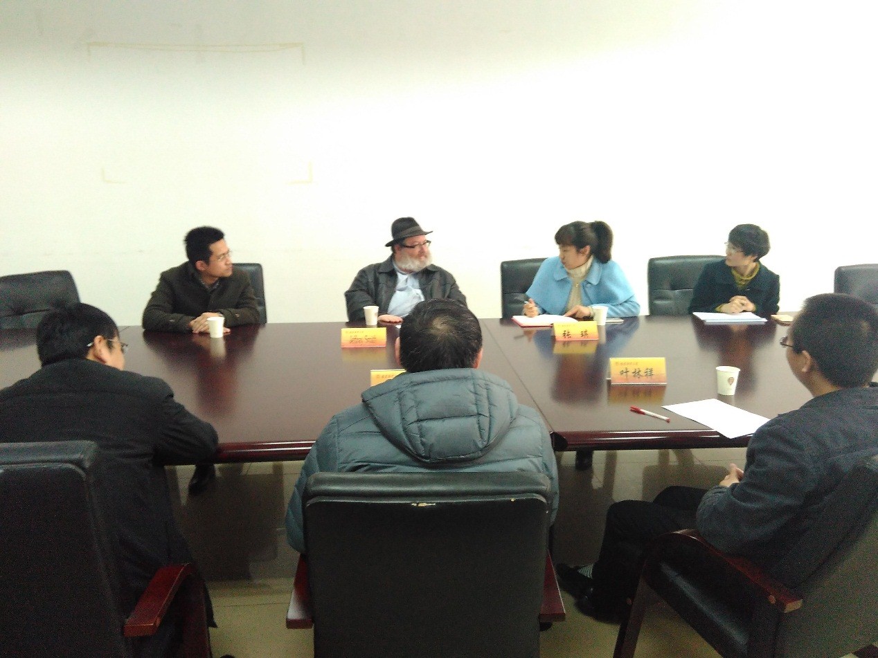2016年2月29日下午,公司聘请的外籍教师Jeffrey Smith到岗,陈耀辉经理、叶林祥副经理、尹敬东副经理在院会议室与Jeffrey教授进行座谈,国际处张琪老师、经济系主任周绍东副教授、教务秘书孔伟老师、外事秘书屈超老师参加座谈。