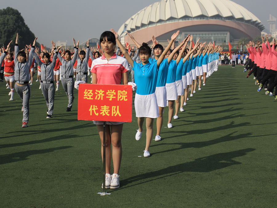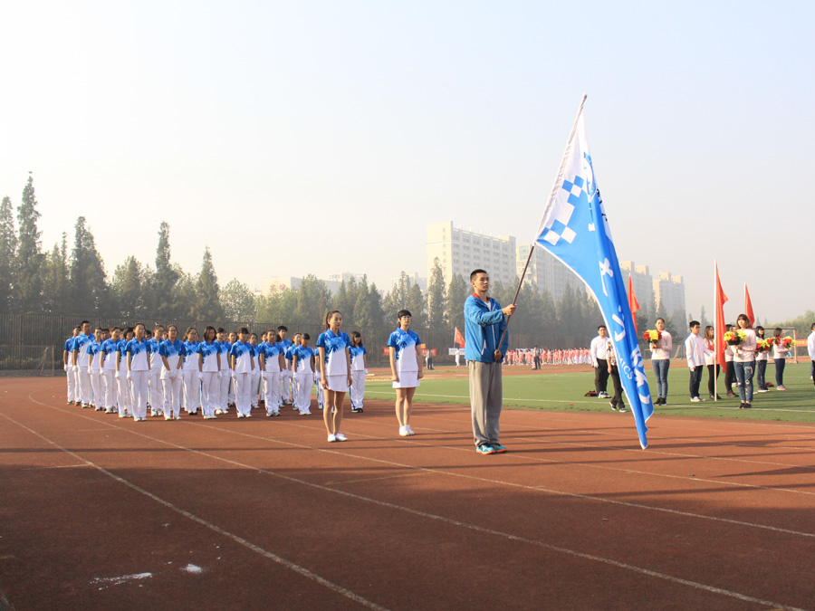 最美不过经院蓝。开幕式上,公司方阵代表队身穿亮眼夺目的蓝白运动服,高举“经院健将,劈波斩浪,气贯长虹,力破苍穹”的口号牌;蓝色的院旗下,广播操代表队以整齐划一的动作,昂扬向上的精神面貌,充分展现了公司师生超越自我,青春无畏的心声。