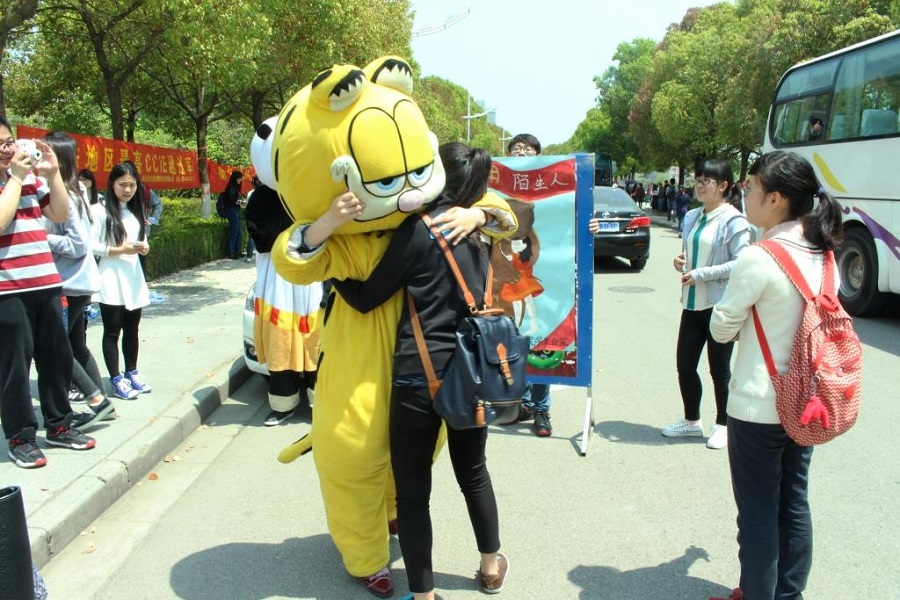4月22日中午,由今年会员工会举办的“你好,陌生人”温暖校园活动在公司西苑举行。穿戴可爱玩偶服的志愿者们举着“亲,来抱抱吧”和“我可以抱你吗?”的牌子,给来往的同学们送上拥抱。一个个温暖的拥抱,让情感在彼此间传递。