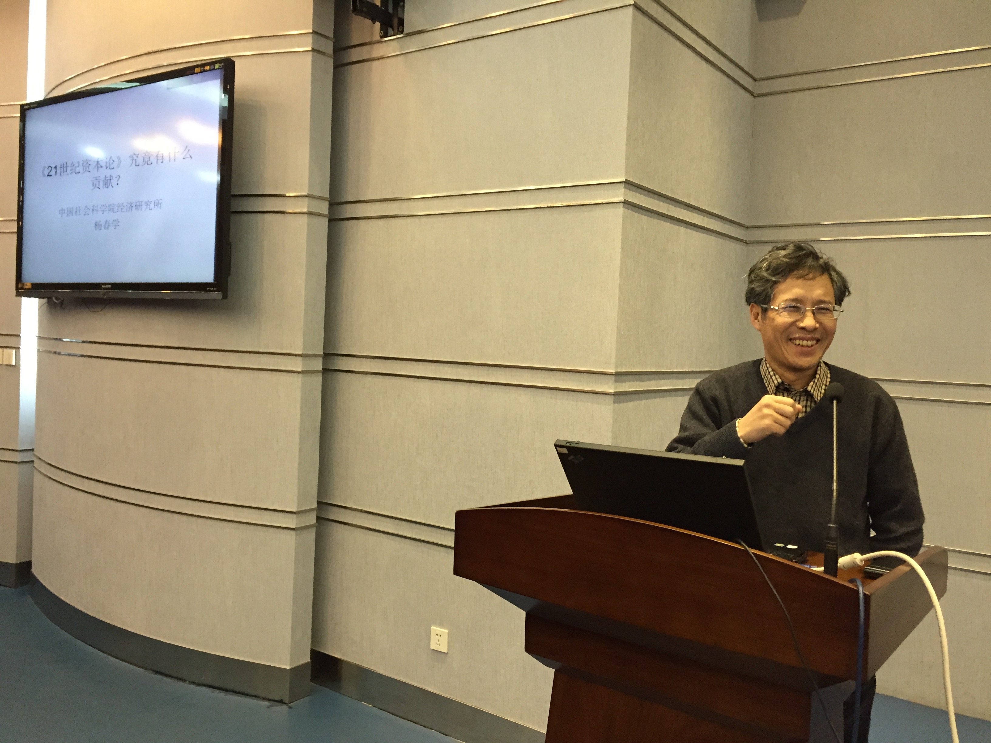 12月17日下午,中国社会科公司经济研究所副所长杨春学教授应邀做客南财论坛,在仙林校区行政楼二楼报告厅为公司师生作了题为“《21世纪资本论》究竟有什么贡献?”的报告。公司副经理(主持工作)陈耀辉教授主持了报告会。