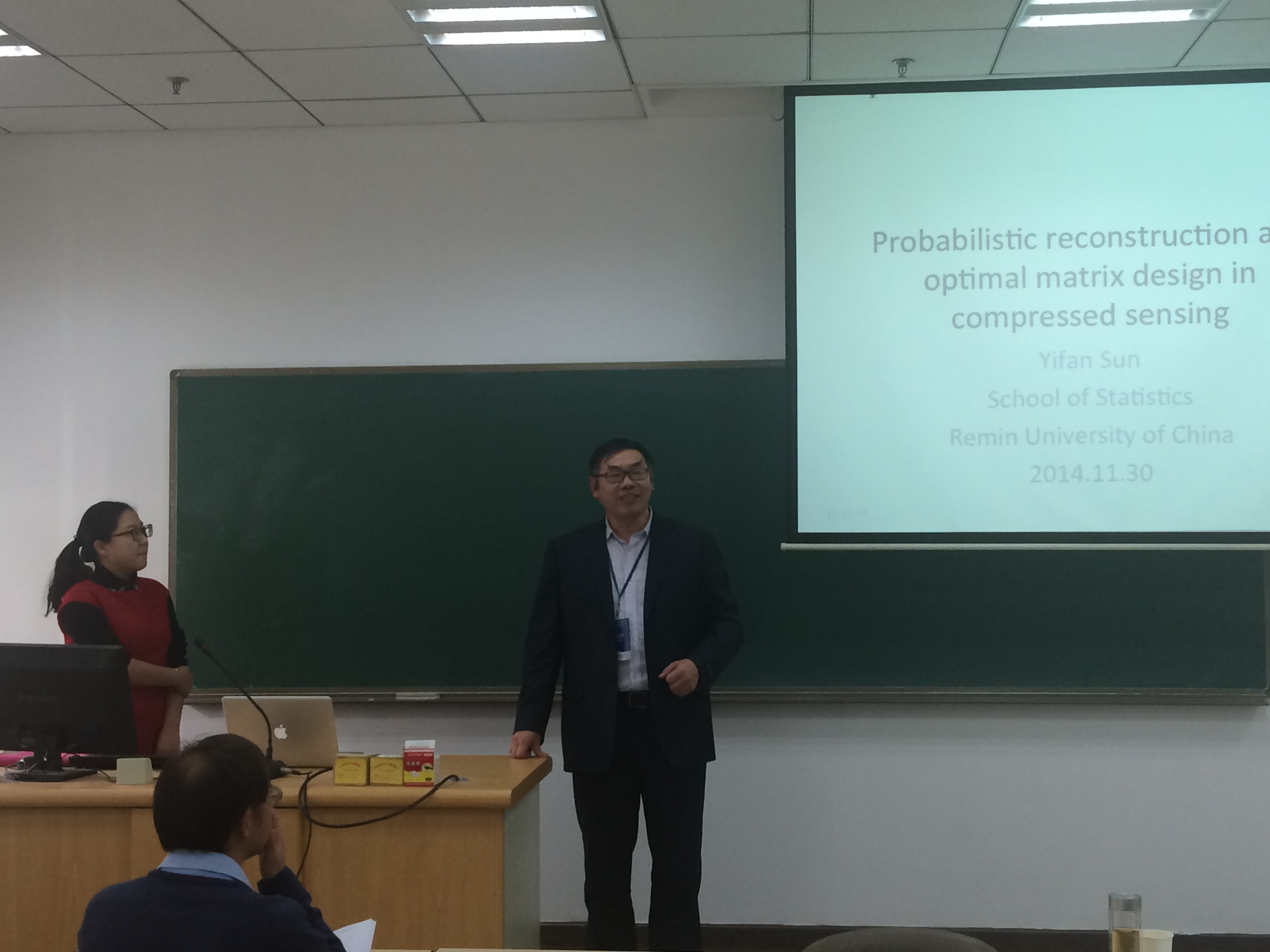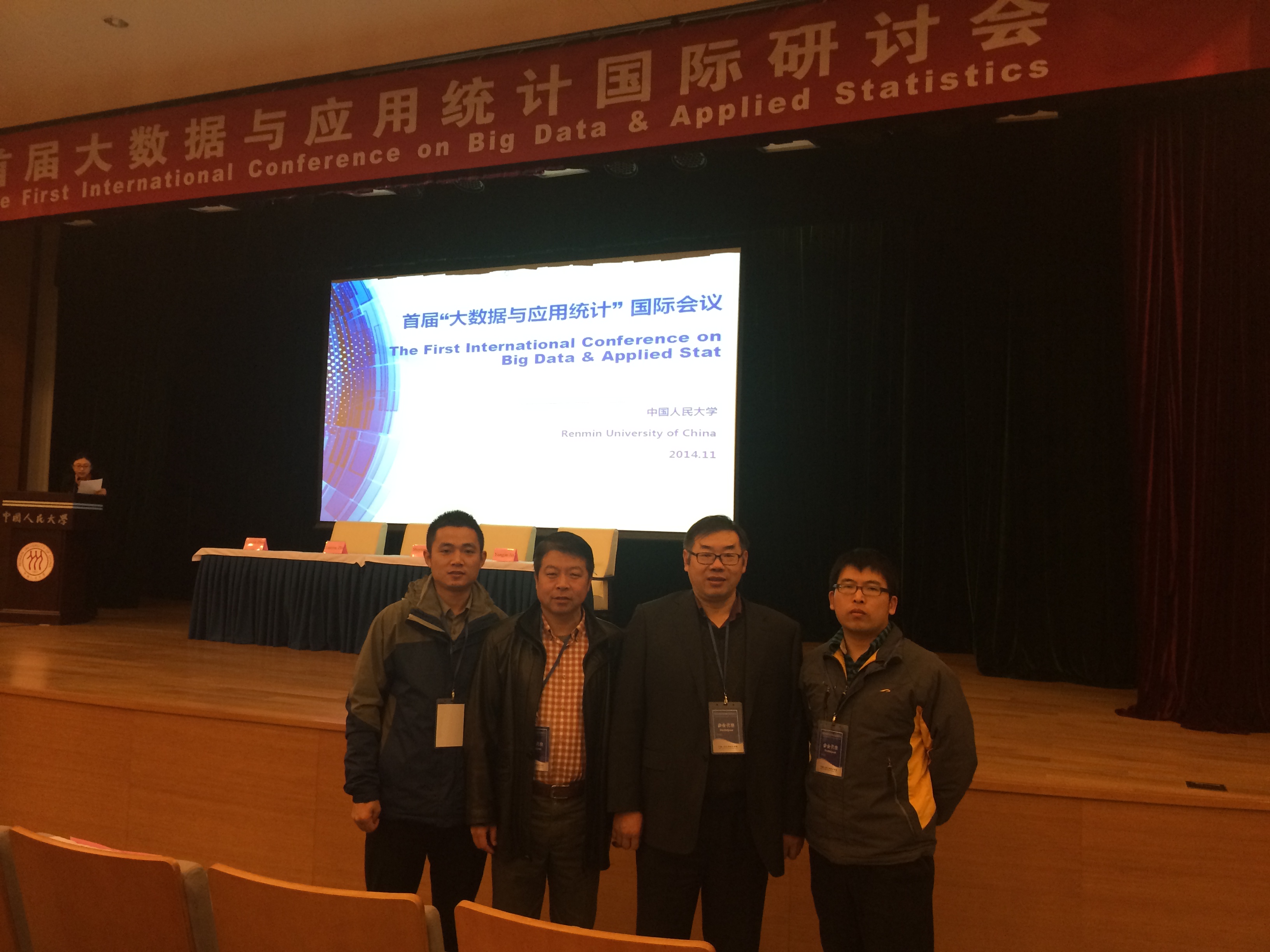 2014年11月28日至30日,首届“大数据与应用统计” 国际会议在中国人民大学召开,公司副经理(主持工作)陈耀辉教授、统计学一级学科带头人李刚教授、统计系副主任韩中博士、统计系周朋朋博士等一行四人应邀出席。此次会议由教育部人文社科重点研究基地中国人民大学应用统计科学研究中心、中国人民大学统计公司、兰州商公司统计公司、中国科公司数学与系统科学研究院、北京大学光华管理公司和首都师范大学数学科学公司承办,会议组委会邀请了来自哈佛大学、耶鲁大学、普林斯顿大学、中国人民大学等国内外知名学府的多名统计领域的专家参加此次会议,参会总人数400余人。