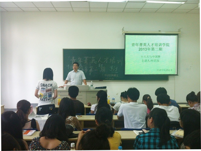 2013年5月22日,公司在专一104举办了青年菁英人才培训公司2013年第二期。此次培训邀请到了马克思主义公司党总支书记、经理叶昌友教授作为嘉宾,演讲主题为“十八大与中国梦”,公司青年菁英人才培训公司全体成员参加了此次活动。