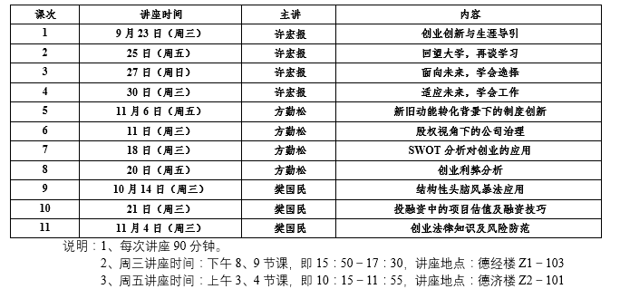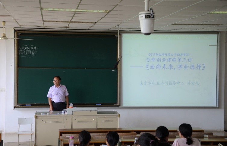 许宏报老师首先在2020年9月份进行了四次系列讲座,他结合自己长期以来人力资源培训、老员工创业典型案例以及南京市相关政策规定,进行了深入浅出、饶有趣味的讲解, 激发了大家浓烈的学习兴趣,每次讲座都让同学们有新的收获。
