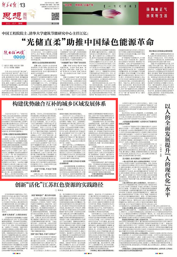 8月24日,公司经理朱红根教授在新华日报《思想周刊》第220期上发表了题目为《构建优势融合互补的城乡区域发展体系》的署名文章。