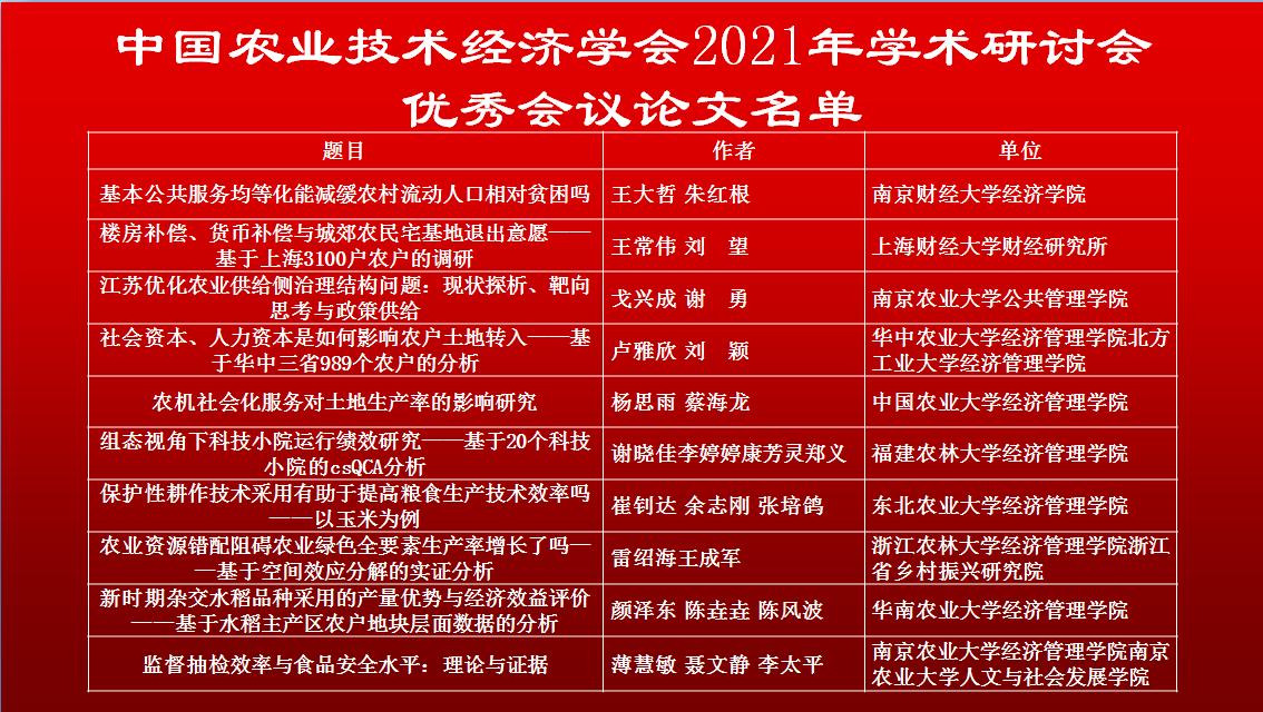 2021年9月26-27日,中国农业技术经济学会2021年学术研讨会于线上举行。本次大会由中国农业技术经济学会和江西省农业科公司主办,中国农业科公司农业经济与发展研究所和江西省农学会承办。