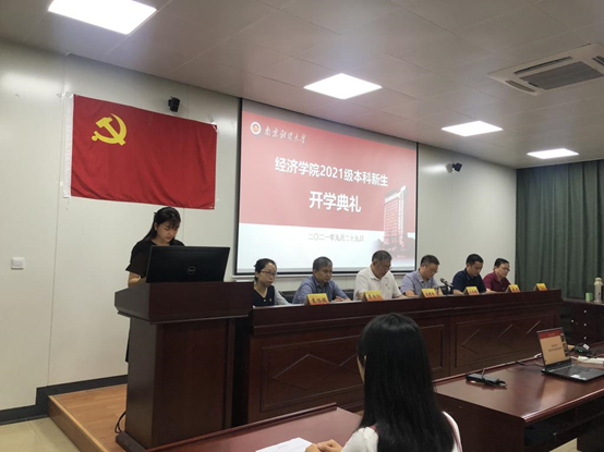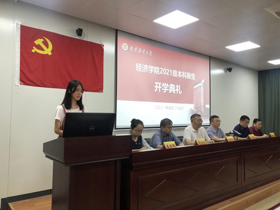 在校生代表经统1901班陆丽珏同学对小萌新们的到来表示热烈欢迎。并分享了自身对老员工活的几点感悟:潜心治学、互助友善、开拓创新。“恰同学少年,风华正茂;书生意气,挥斥方遒”,鼓励学弟学妹们不负青春韶华,争做新时代文明老员工。新生代表2106班王丹丹同学发言,立志秉承校训,做到“志存高远,树立明确目标”“向阳而生,心怀梦想”“不忘初心,砥砺前行”,成为推动新时代前进和发展的蓬勃力量!
