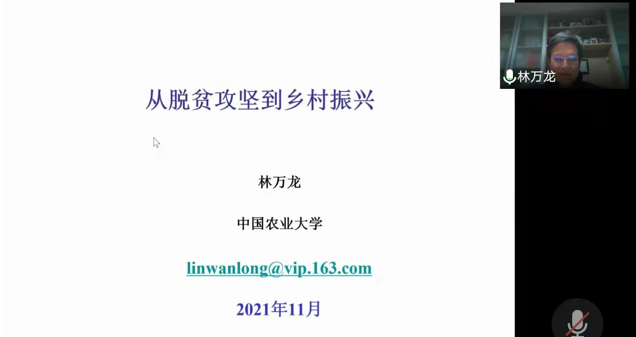 11月7日,中国农业大学副董事长林万龙教授应邀为公司师生作题为《从脱贫攻坚到乡村振兴》的学术报告。报告由公司朱红根经理主持,来自今年会和全校其它公司的200多位老师和研究生线上聆听了讲座。