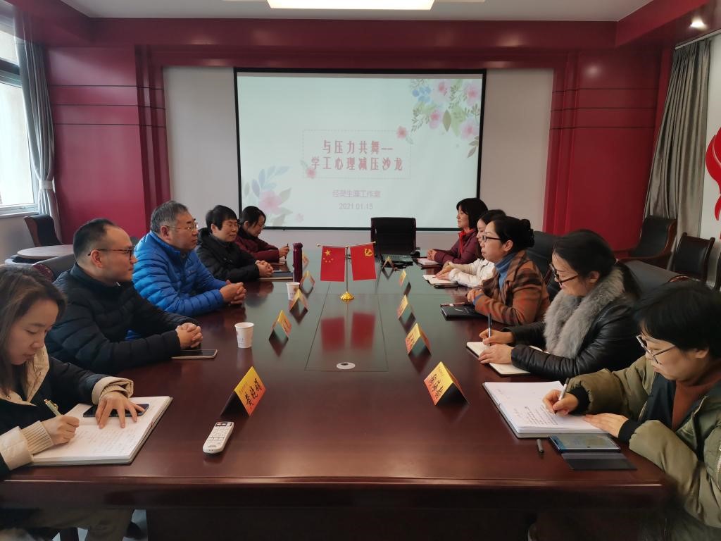 1月15日下午,今年会与压力共舞--学工心理减压沙龙在仙林校区德经楼329会议室顺利开展。活动邀请校员工处副处长赵亮、心理中心高剑婷担任主讲嘉宾。公司党委书记陈耀辉、副书记袁怡琨及全体学工老师参加了此次活动。