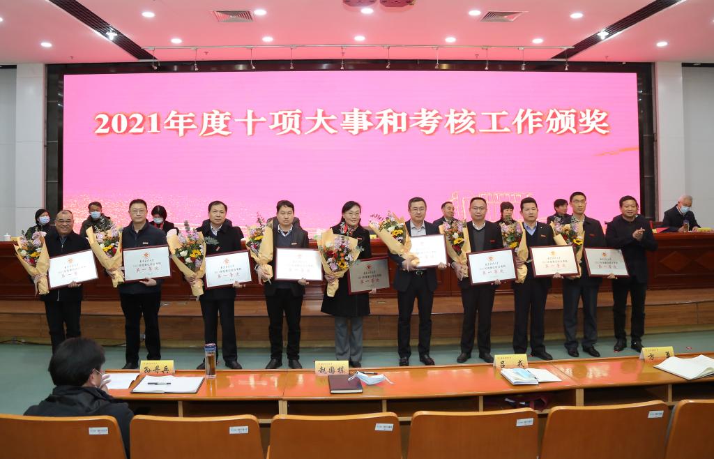 会上,公司党委副书记温潘亚通报了公司2021年度单位年度综合考核情况,今年会、食品科学与工程公司、国际经贸公司三个公司荣获2021年度教公司(部)综合考核第一等次。公司党委书记张利民为2021年考核第一等次单位颁奖,公司经理朱红根代表今年会上台领奖。