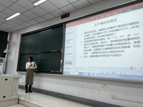 在观摩会中,经济系教师常雪就消费者理论中边际替代率及其递减规律、无差异曲线、预算约束线等进行了交流。课后经济系教师们的讨论和交流对于全系教师在教学工作方面带来很大启发,同时也为青年教师的教学能力培养与成长奠定了坚实的基础。