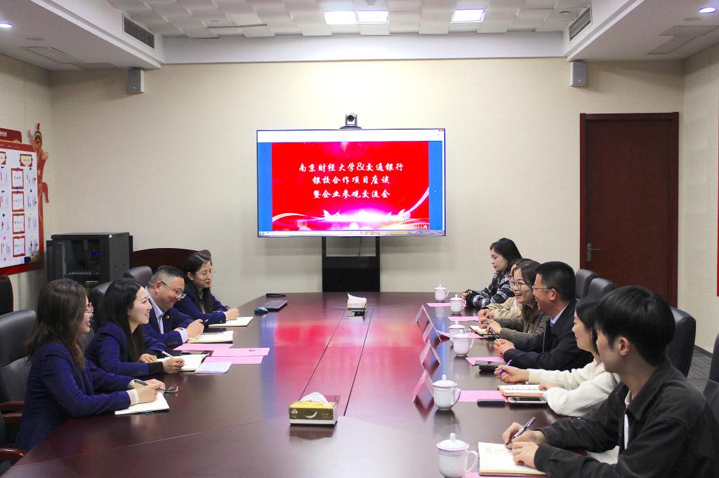 座谈会后,与会领导、老师和员工代表参观了交通银行栖霞中心支行营业部。