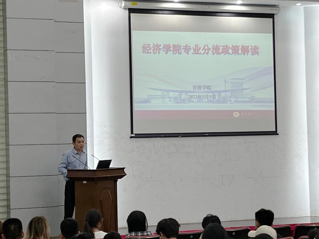 经济系系主任刘余老师对经济学专业进行介绍。他从经济学专业的专业特性,谈到职业规划和就业方向,结合人才培养方案的特色,以及数字经济的时代特征对经济学专业和数字经济方向班进行了讲解。
