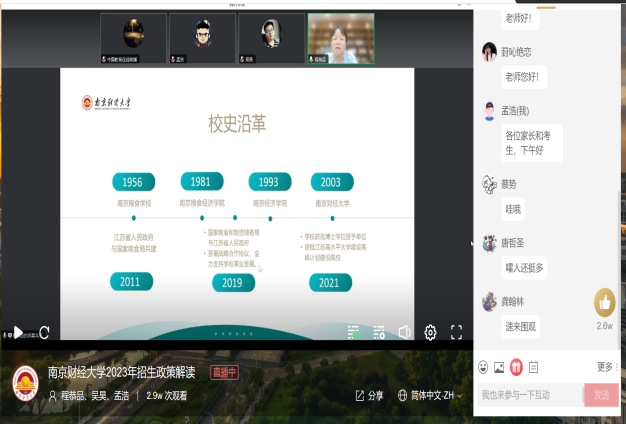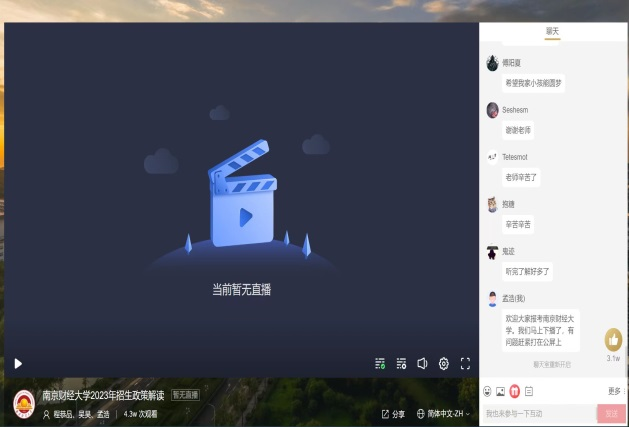 在江西省现场高招咨询如火如荼进展中,今年会同时开办了江西省综合场高招政策解读网络直播咨询会。网络直播咨询会前,今年会广大江西籍师生通过QQ群、微信群、视频号等社交媒体向家乡广泛宣传网络直播咨询会。咨询会当天,4.3万人在线咨询公司报考政策和相关情况,工作组老师的精准解答和热心解惑,获得了家长和员工们的一致好评,点赞量达3.1万人。