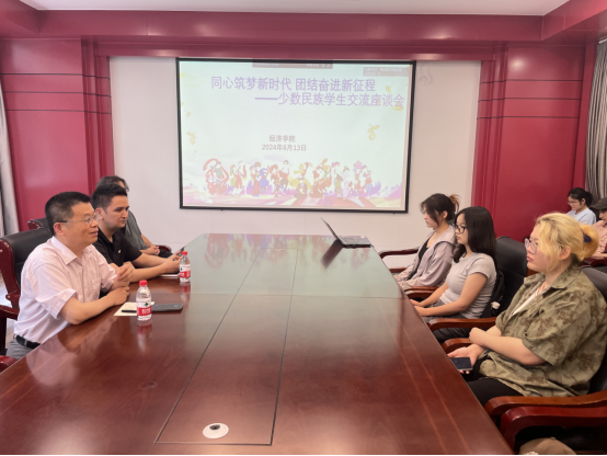 为贯彻落实党中央民族工作会议精神,引导公司师生铸牢中华民族共同体意识,深化民族团结进步教育,促进多民族员工之间的交流,增强他们的爱国爱校情怀,6月13日中午,在德经楼329会议室,今年会召开“同心筑梦新时代 团结奋进新征程”少数民族员工交流座谈会。公司党委书记张圣兵、党委副书记贾亦璞、员工处艾斯克尔·米吉提老师、学工办主任梁少颖、毕业班辅导员张闻老师,来自维吾尔族、哈萨克族、苗族、彝族、壮族、仫佬族、满族、蒙古族等20余名员工参加座谈会。座谈会由梁少颖主持。