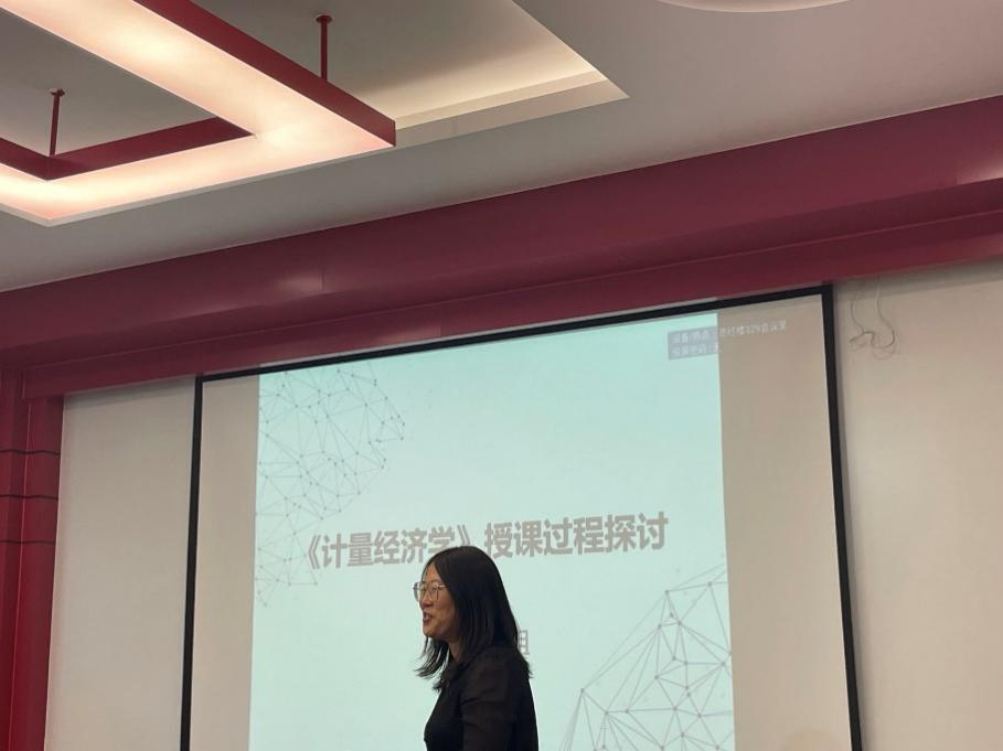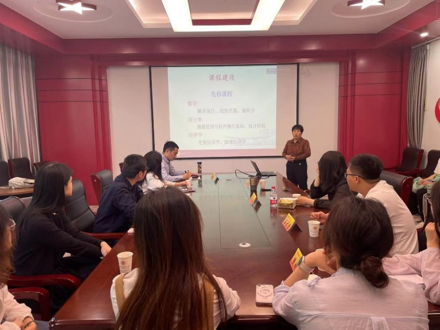首先,郭存芝教授全面回顾了课程建设历程。以《计量经济学》课程建设为核心,坚持淡化数学推导的课程建设理念、强调通过注重理论应用来培养员工兴趣和能力,并构建了涵盖线上课程、教材、习题册、试题库、机考系统等立体化配套教学资源。郭教授以自身在此领域深耕、奉献二十多年的经验为出发点进行的分享,既专业又生动,对每一位在场的教师和员工都是一次极大的启发。