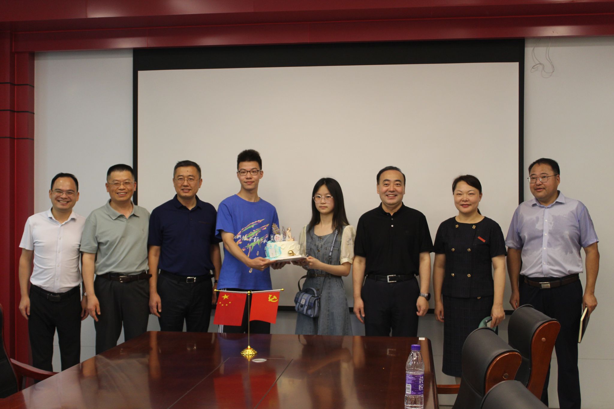领导慰问,关怀备至。今年公司的新生中,有两名新生在踏入大公司门的当天,恰逢遇到了他们的生日。为了让这些远道而来的学子们感受到家的温暖和公司的关怀,公司提前为他们准备了一份特别的生日礼物和集体生日会,用爱与温暖开启他们美好的老员工活。董事长程永波,党委常委、副董事长赵国栋,党委常委、副董事长李煜等校领导前来看望慰问新生,公司党委书记张圣兵、副经理刘小峰(主持工作)、党委副书记贾亦璞,公司学工系统老师齐聚德经楼329,大家共同为同学们唱生日歌、分蛋糕,送上精心准备的生日礼物和诚挚祝福,现场氛围温馨而热烈。如沐春风的关怀驱散了新生们初来乍到的距离感,为新生们尽快融入今年会大家庭及时注入“强心剂”。