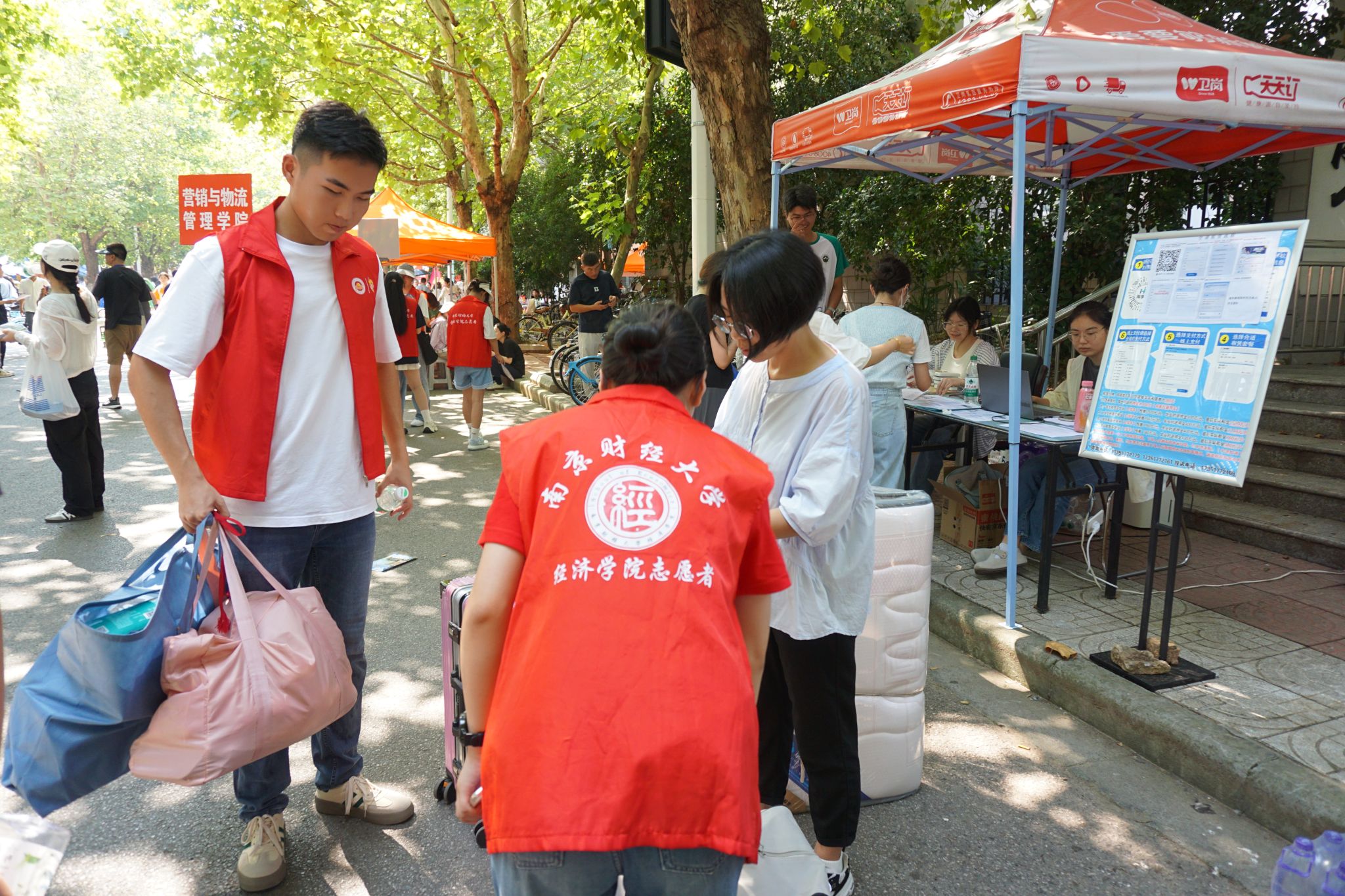 志愿奔赴,为“新”分忧。在此次迎新活动中,公司共招募90余名志愿者参与迎新、军训、体检等各项迎新志愿服务工作,各项工作有序开展。为保障迎新工作的顺利开展,志愿者们早已就位,投身志愿服务、后勤保障工作,咨询答疑、指路引导、秩序维护、行李转运……处处涌现着公司师生党员、志愿者们的身影,努力为初入校园的新同学提供全方位、全天候、全过程的服务与支持,将南财志愿精神之火代代传承。