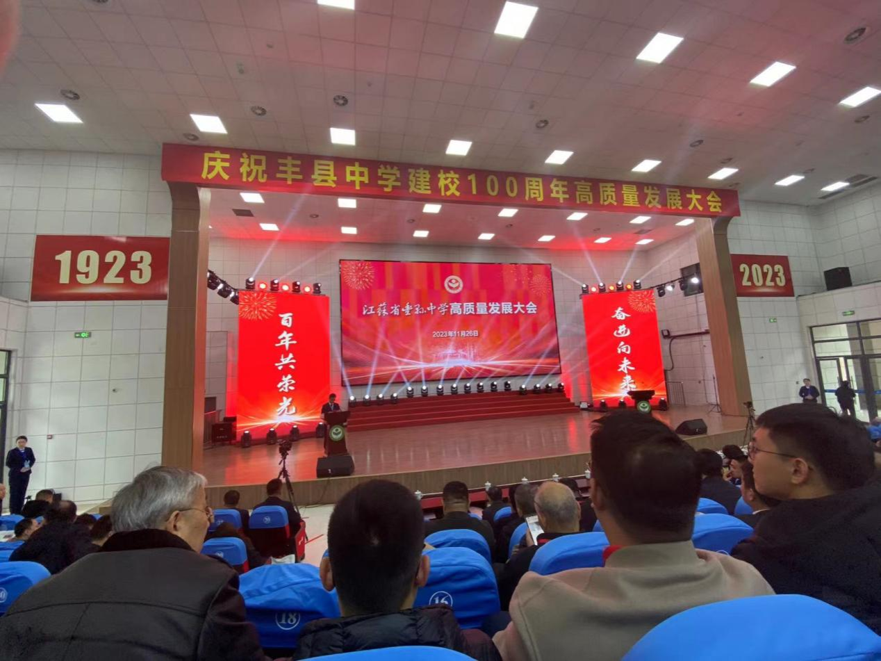 为提高今年会官网在徐州丰县地区的招生宣传工作力度,进一步吸引丰县的优质生源报考公司,2023年11月,公司招生宣传老师张闻赴江苏省丰县中学参加100周年校庆高质量发展大会,并代表公司致以诚挚的祝福。