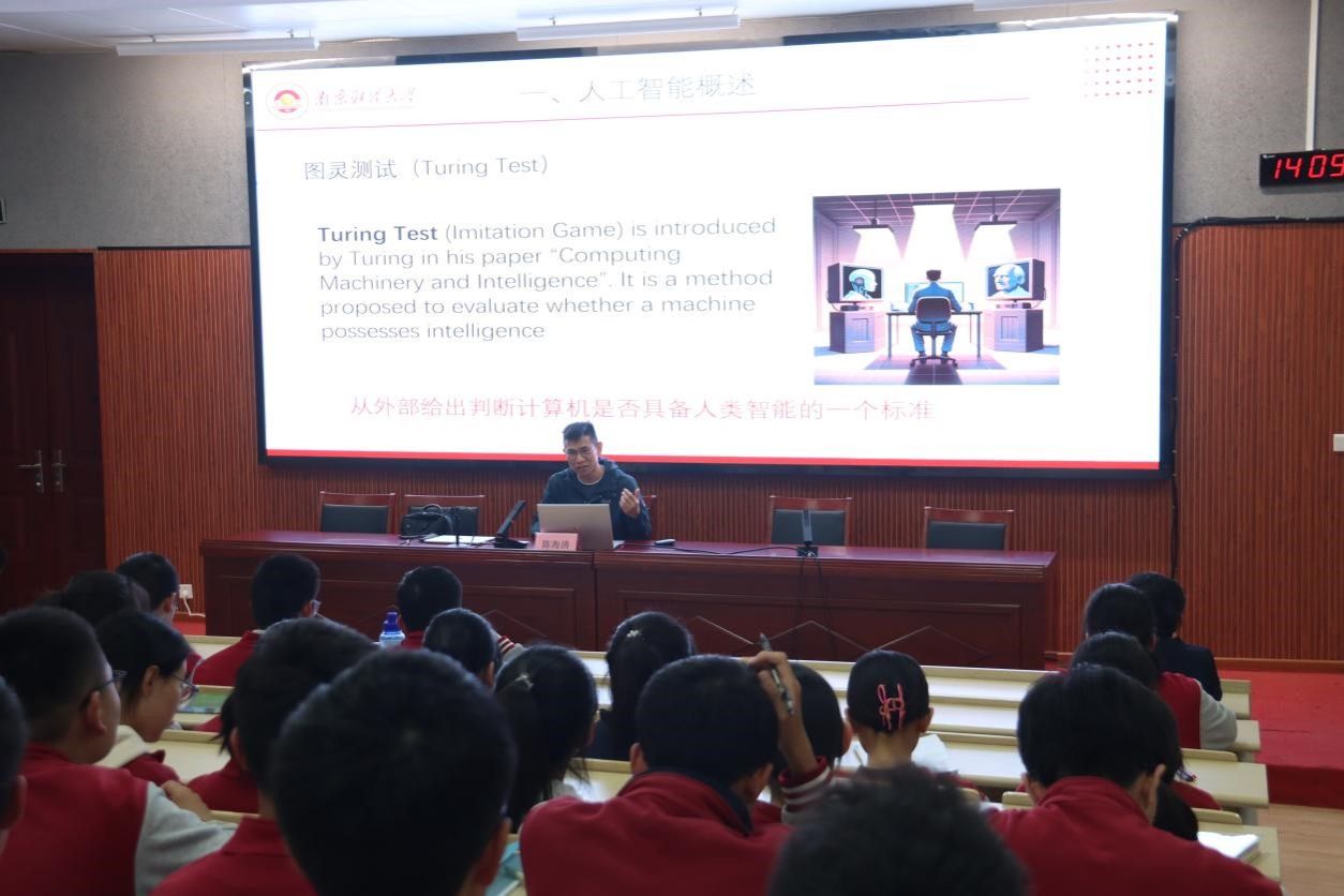 同时,今年会副教授陈海清给徐州中学员工开设了题为《人工智能的前世与今生》的专业讲座,前沿的内容和精彩的讲解获得了在场员工的一致好评。