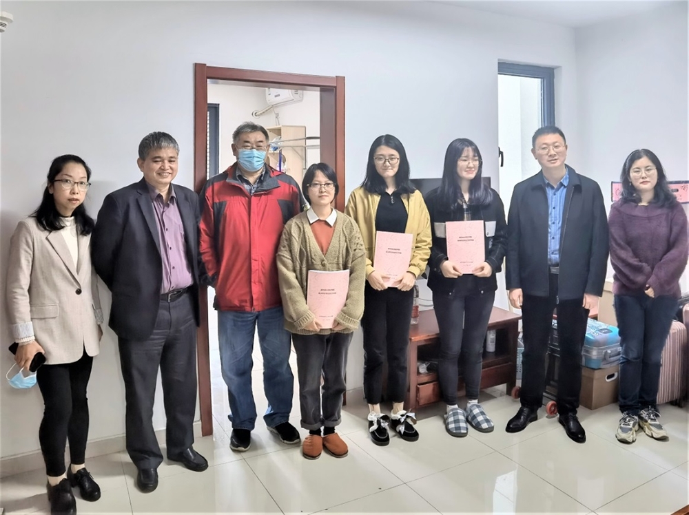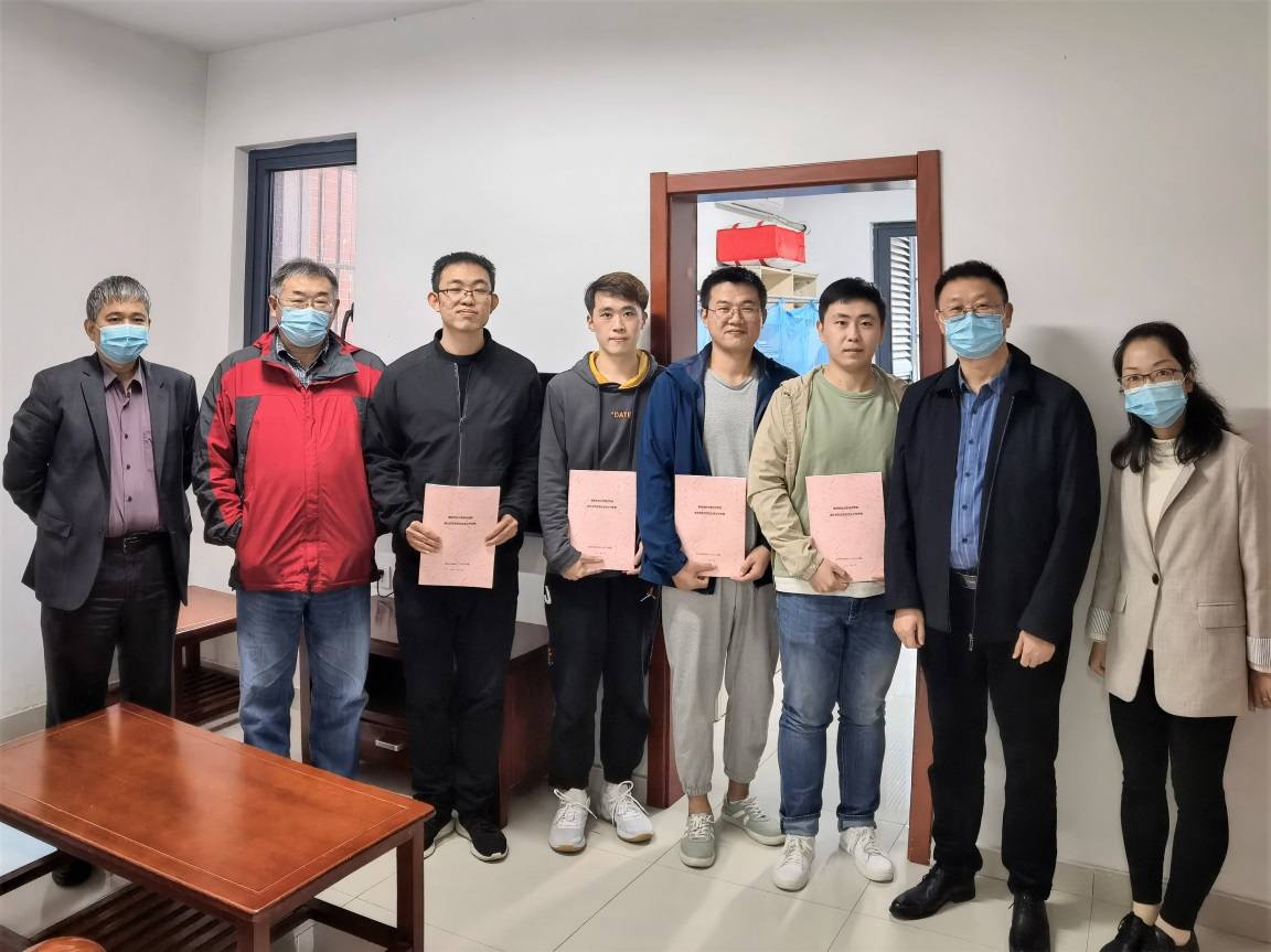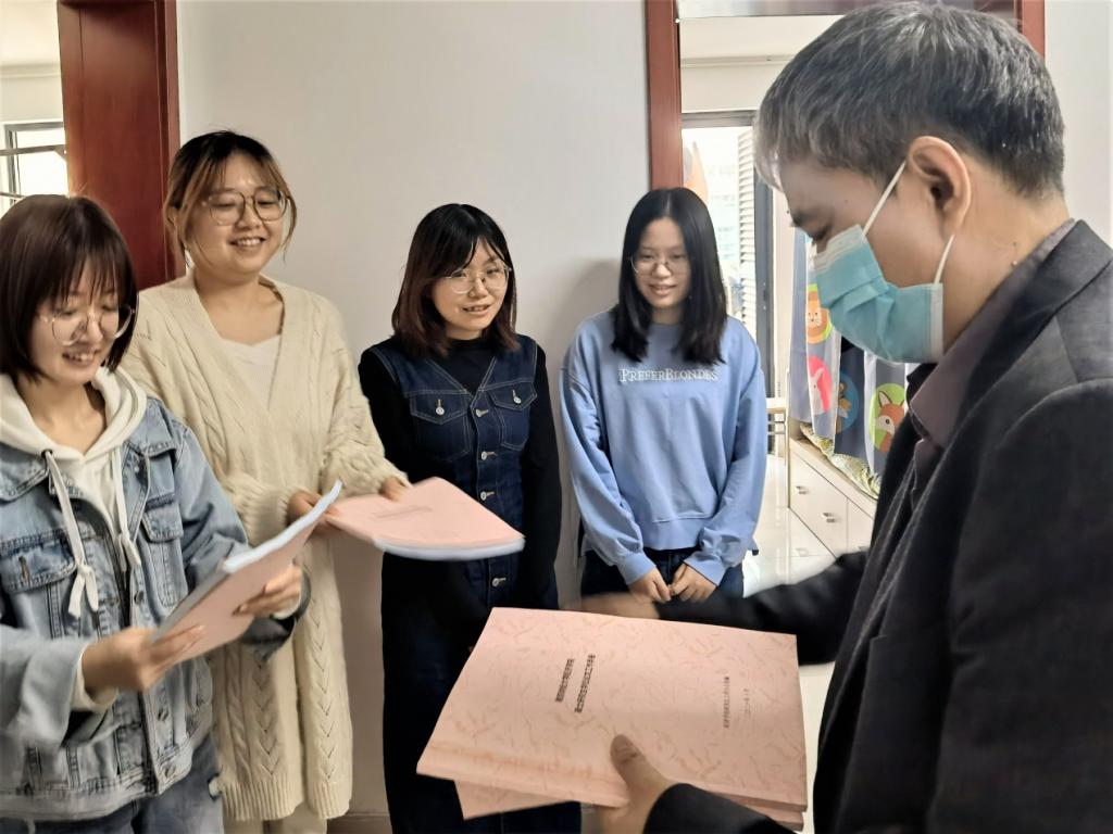公司领导给研究生发放公司编印的《学位论文工作手册》