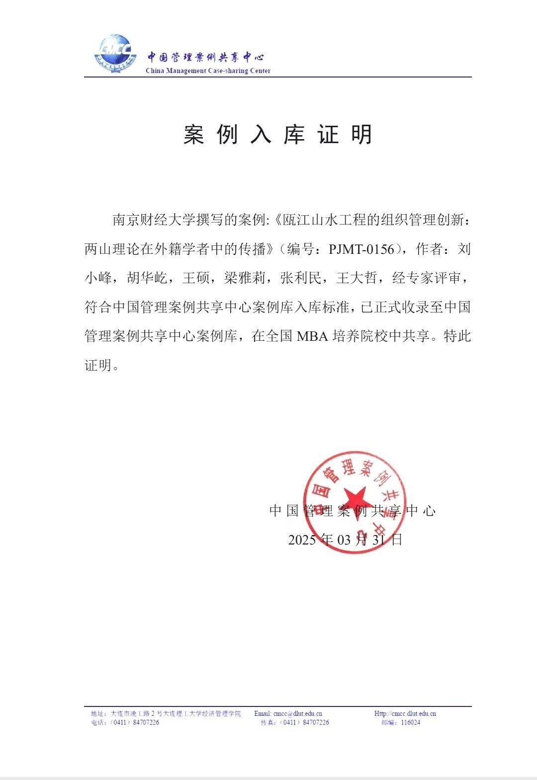 近期,公司刘小峰教授团队撰写的案例《瓯江山水工程的组织管理创新:两山理论在外籍学者中的传播》,经中国管理案例共享中心严格评审后成功入库。此次教学案例的入选,标志着公司在产教融合与教学案例开发领域的新突破,为公司公司产品中加强理论与实践深度融合提供了高质量范本。