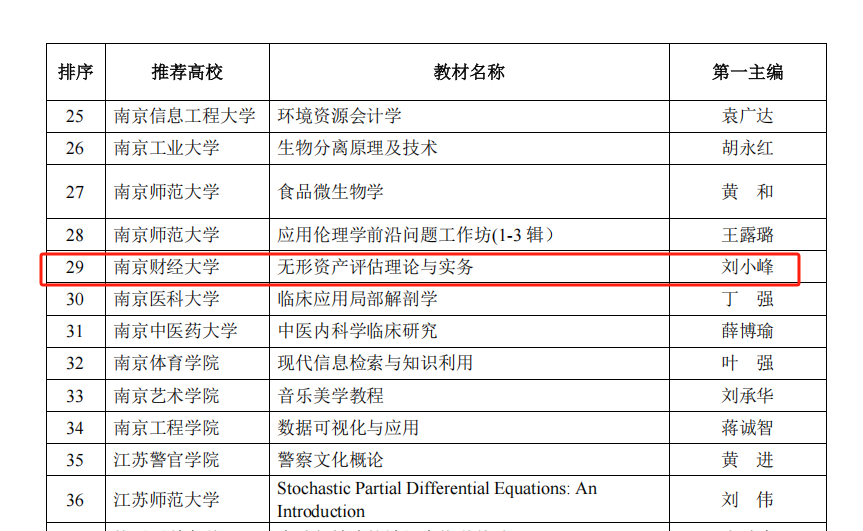 近日,2024年度江苏省研究生优质教学资源评选结果正式公布,公司经理刘小峰教授主编的《无形资产评估理论与实务》教材成功入选,这一成果不仅彰显了公司在研究生教育领域的深厚积淀,也为公司团队建设和人才培养再添新动力。