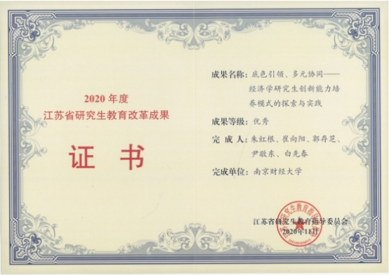 公司教师获得2020年江苏省研究生教育改革成果优秀奖
