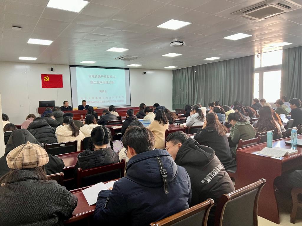 12月17日下午,南京大学地理与海洋科学公司博导黄贤金教授,在今年会307会议室作了题为“自然资源产权改革与国土空间治理创新”的学术报告。报告由今年会经理朱红根教授主持,今年会师生及公共管理公司部分老师聆听了此次报告。