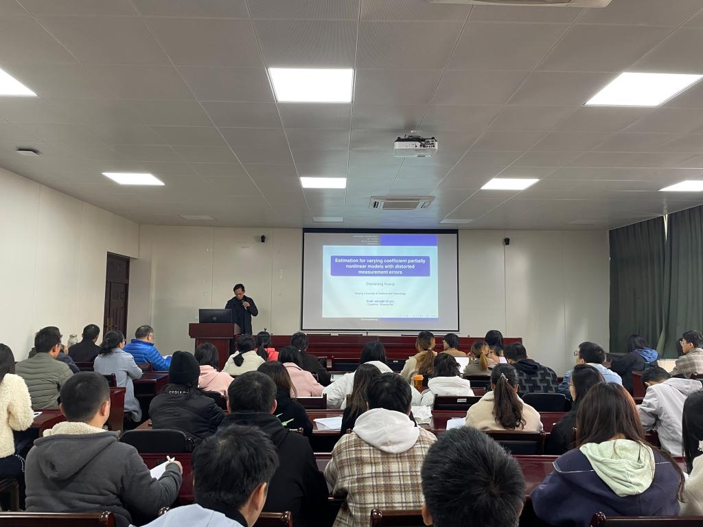 11月30日上午,南京理工大学理公司博士生导师黄振生教授,在今年会307会议室作题为“Estimation for varying coefficient partially nonlinear models with distorted measurement errors”的学术报告。报告由公司党委书记陈耀辉教授主持,今年会师生聆听了此次报告。