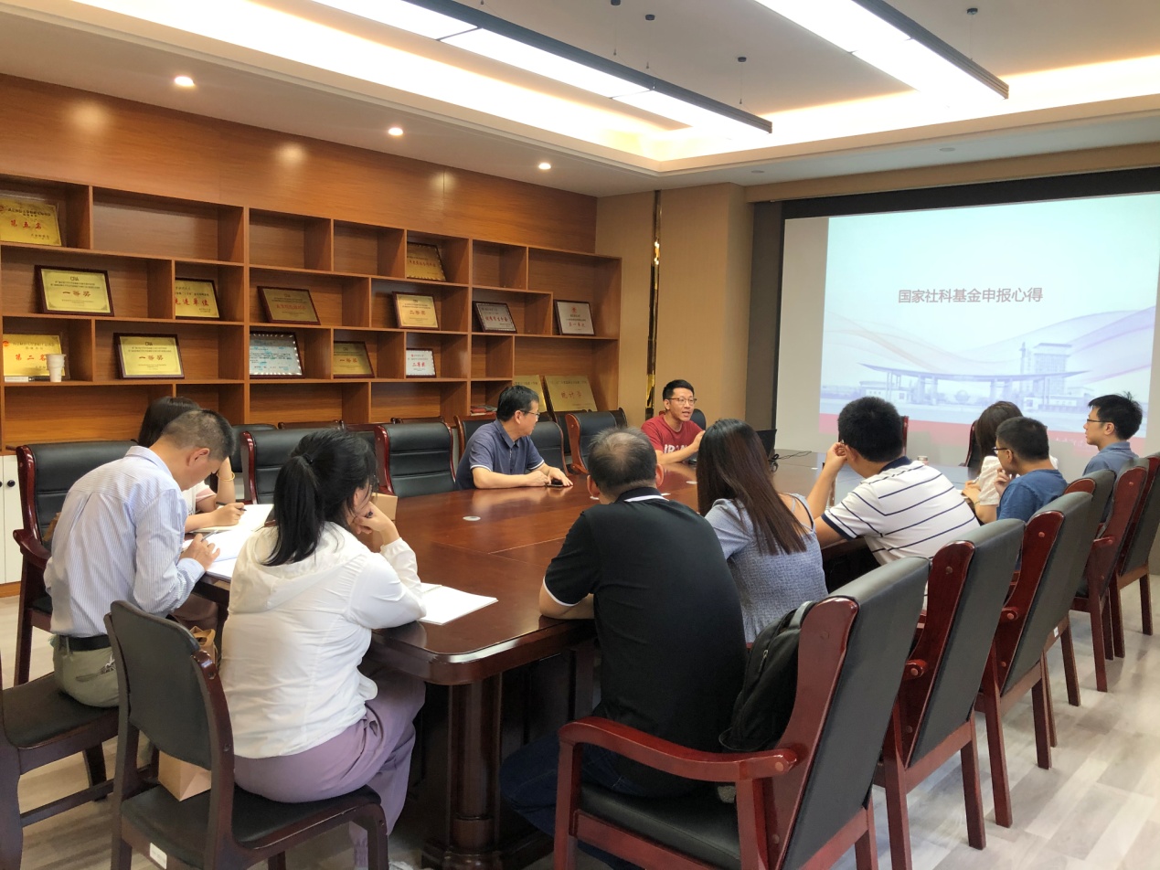为全面提升国家社科基金项目与国家自科基金项目的申报质量,不断提高国家级项目的立项率,2021年9月15日下午,今年会第一期2021年度国家基金项目申报经验交流会暨2022年度国家基金项目申报动员会在德经楼323会议室举行。公司邀请了有国家基金成功申报经验的师磊老师和杨振兵老师给全院青年教师做基金申报经验分享和心得交流,公司经理朱红根、副经理尹敬东出席了本次会议,交流会由副经理尹敬东主持。