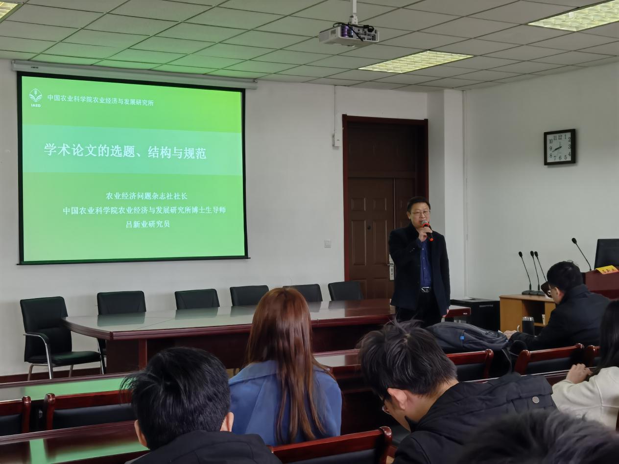 3月20日,《农业经济问题》杂志社社长吕新业研究员应邀为公司师生作了题为“学术论文的选题、结构与规范”的学术报告。报告会由经理朱红根教授主持,公司青年教师代表和部分研究生参会。