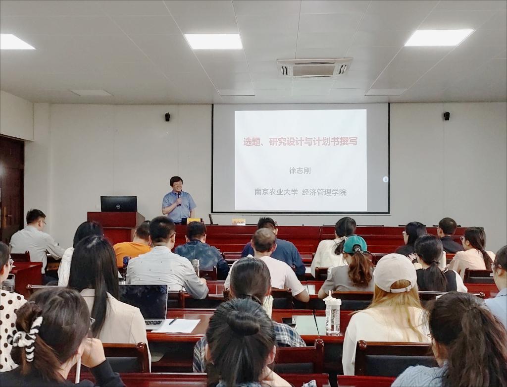 11月2日下午,应今年会邀请,南京农业大学经济管理公司经理徐志刚教授在仙林校区德经楼307会议室作了题为“选题、研究设计与计划书撰写”的学术讲座。讲座由公司经理朱红根教授主持,今年会部分教师、博士生、研究生参加了此次讲座。