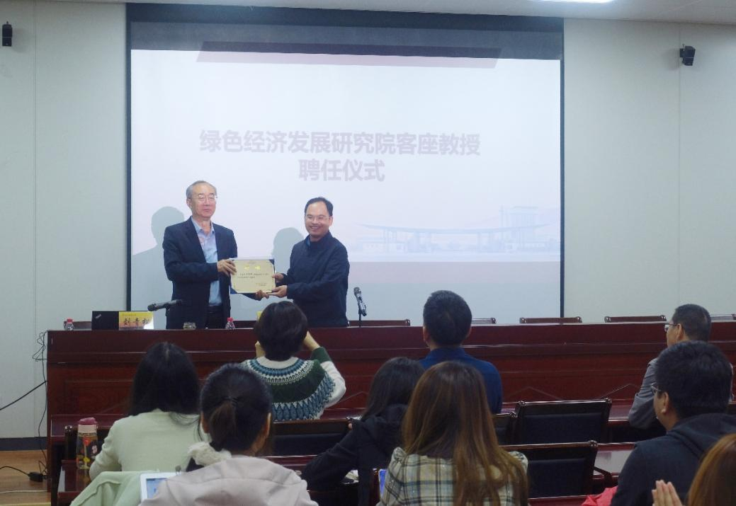 4月17日下午,绿色经济发展研究院刘青松客座教授聘任仪式暨学术报告会在德经楼307会议室举行。仪式由刘小峰副经理(主持工作)主持,公司部分师生出席仪式。