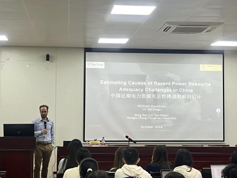 10月28日下午,公司于德经楼307会议室举办主题为“低碳转型中的电力资源充足性”的专题讲座。本次讲座邀请了加州大学圣地亚哥分校机械与航空工程系和全球政策与战略公司的助理教授Michael Davidson作为主讲嘉宾,由周元春副教授主持。