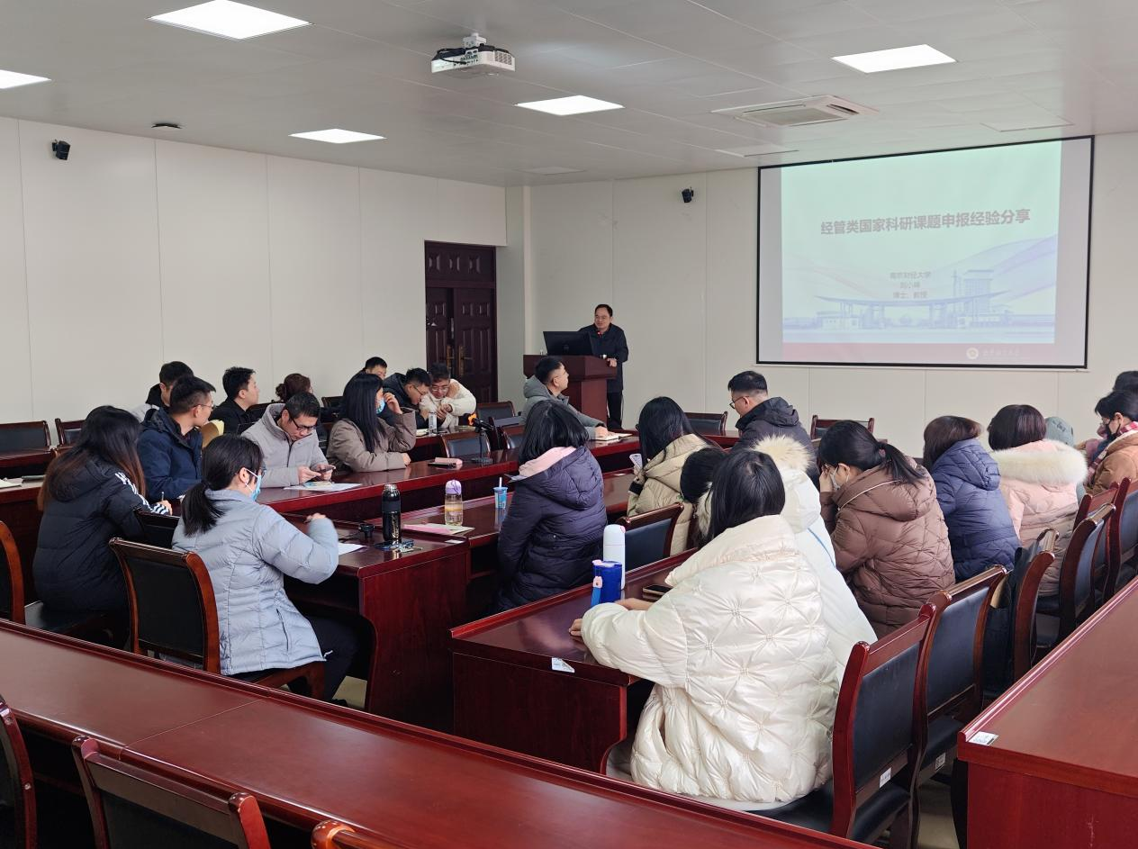2025年1月9日,公司在德经楼307举办了学术论坛,本次论坛带来主题“经管类国家科研课题申报经验分享”的报告。本次会议刘小峰教授围绕经济类科研课题的申报技巧与策略进行深入讲解,吸引了公司多位教师积极参与。