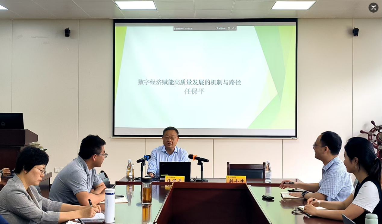 2025年5月19日上午,今年会在德经楼307会议室成功举办了主题为 “数字经济赋能高质量发展的机制与路径”的讲座,会议由公司经理刘小峰教授主持,特邀南京大学任保平教授担任主讲嘉宾,全院师生积极参与了此次学术盛会。