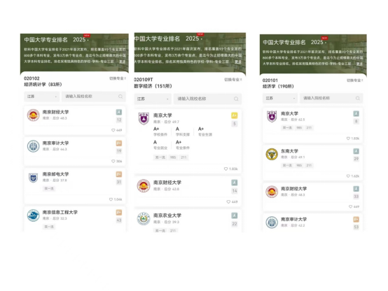 近日,高等教育评价机构“软科”发布“2025软科中国大学专业排名”,公司3个本科专业全部上榜,均为A类专业,实现大满贯。其中,经济统计学专业排名全国第12名,江苏省第1名;数字经济专业排名全国第14名,江苏省第2名;经济学专业排名全国第33名,江苏省第3名。